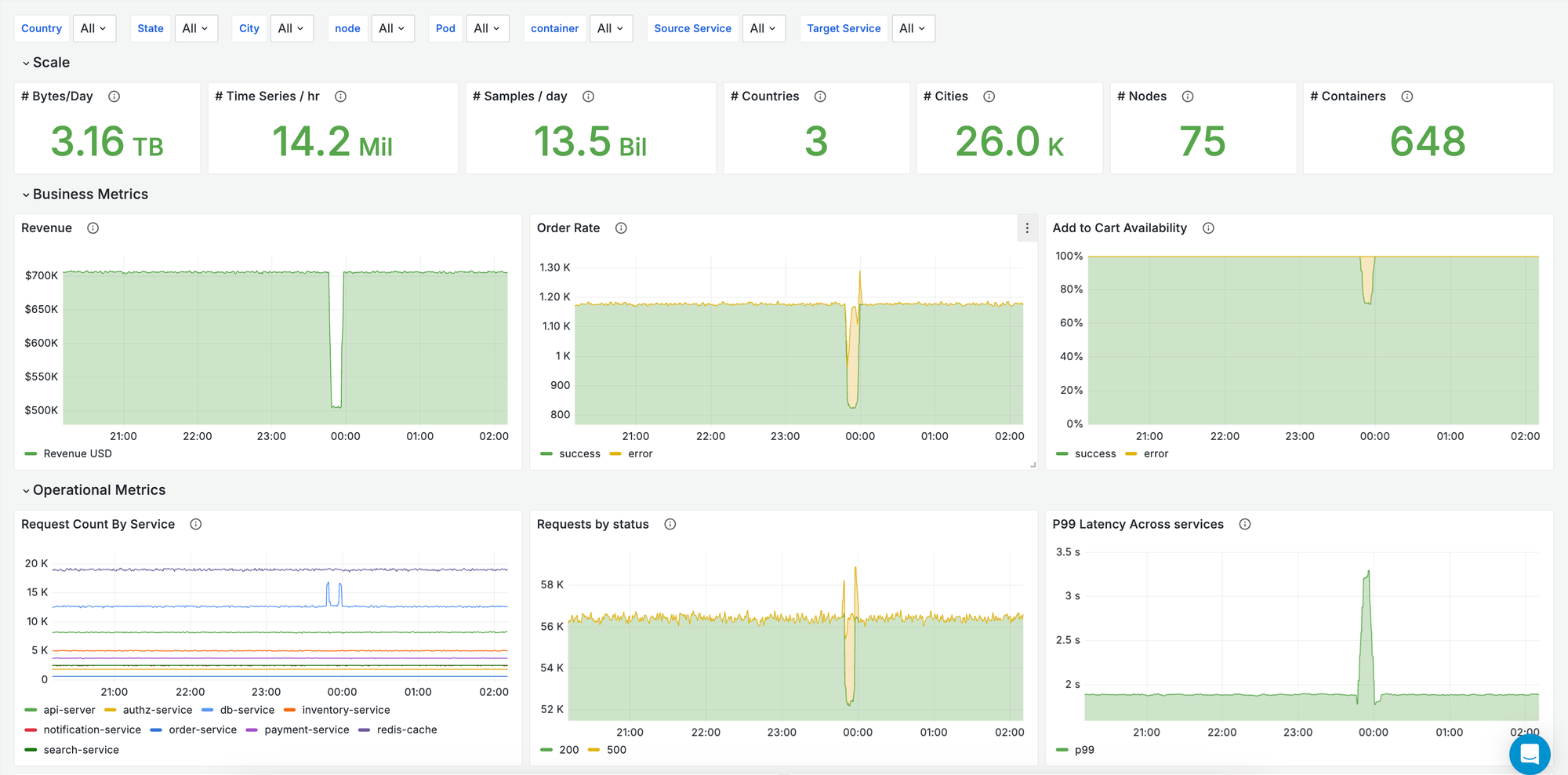 Adding more dimensions to improve drill-down capabilities can rapidly lead to a significant spike in captured metrics. For example, with the rise of microservice architectures, the sheer volume of metrics has skyrocketed as pods and containers continuously cycle. Similarly, SaaS platforms that demand per-customer visibility add another layer of complexity, drastically multiplying the number of metrics being tracked.